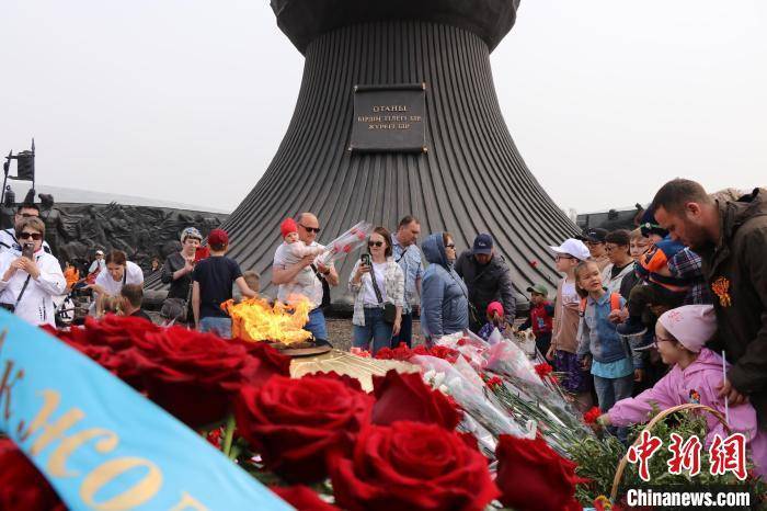 哈首都民众9日来到祖国保卫者广场参加纪念活动。 中新社记者 张硕 摄 摄