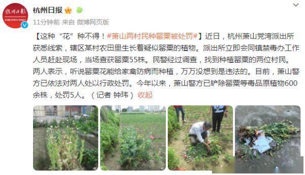 原标题:这种“花”种不得!萧山两村民种罂粟被处罚
