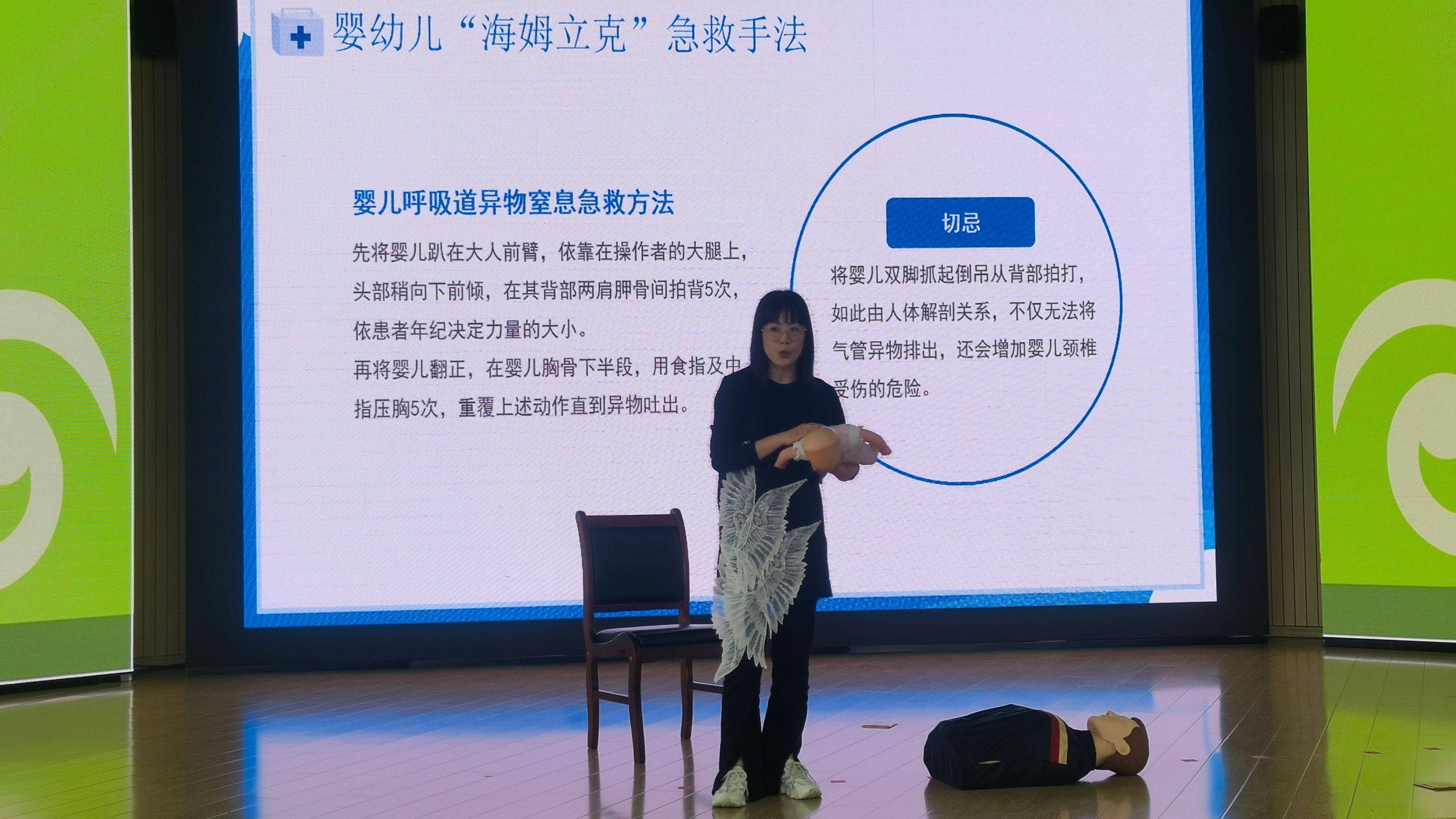 启动仪式上,来自民盟江西中医药高专支部的张琳娟老师从“什么是‘海姆立克’急救”、“‘海姆立克’征象”、“一岁以上儿童及成人‘海姆立克’急救手法”、“成人‘海姆立克’自救”、“婴幼儿‘海姆立克’急救手法”等5个方面普及了“海姆立克”急救法的相关知识。