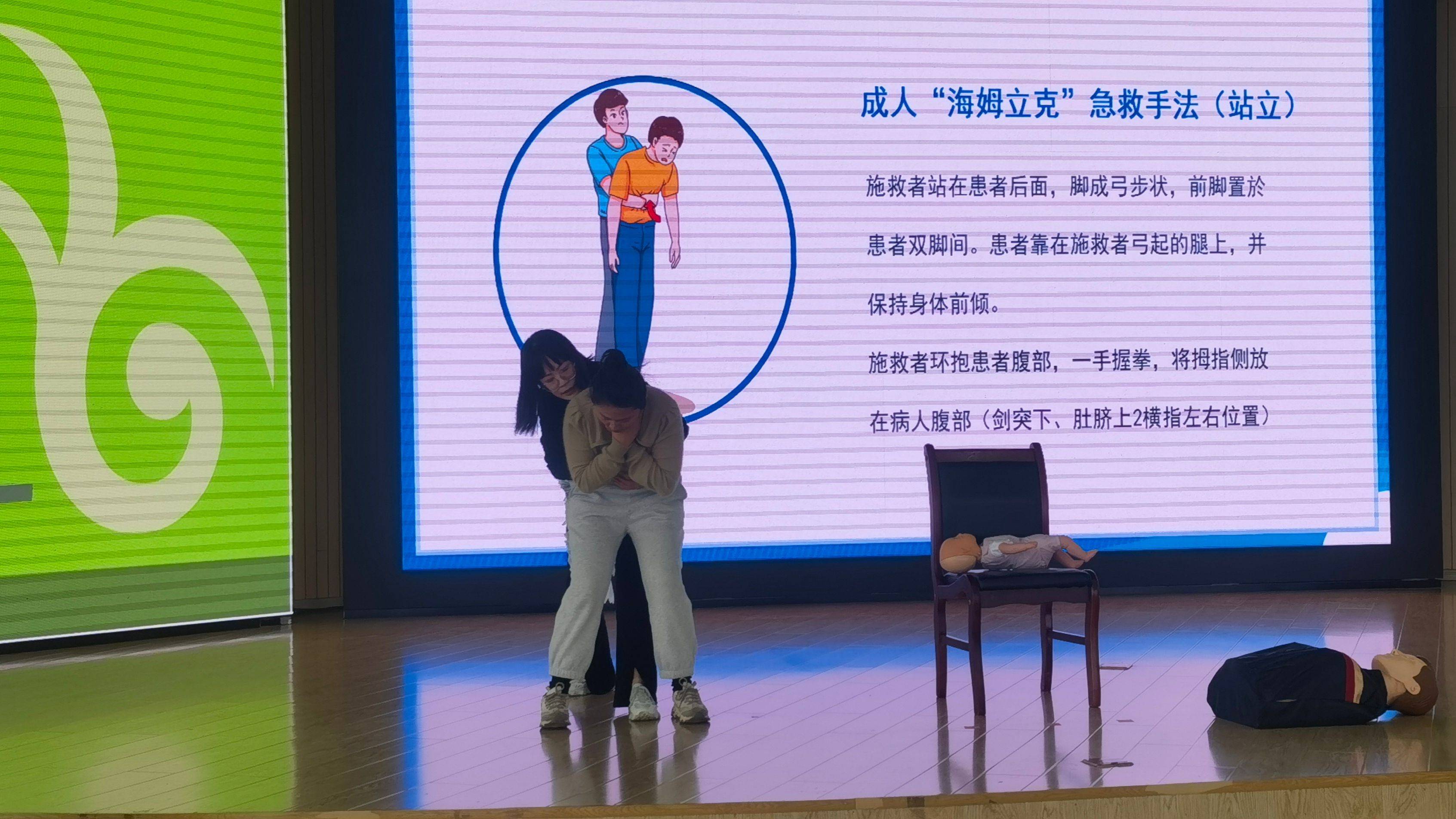 宣讲现场,张琳娟老师将一岁以上儿童及成人的“海姆立克”急救与自救手法编成“剪刀石头布”的口诀,简单易懂又深入人心。“剪刀”,即施救者将拇指放在患者腹部,也就是肚脐上两横指左右位置;“石头”,即一手握拳;“布”,即另一手置于拳头上并握紧,双手急速、冲击性地向内上方压迫腹部,反复进行,直至异物排出。