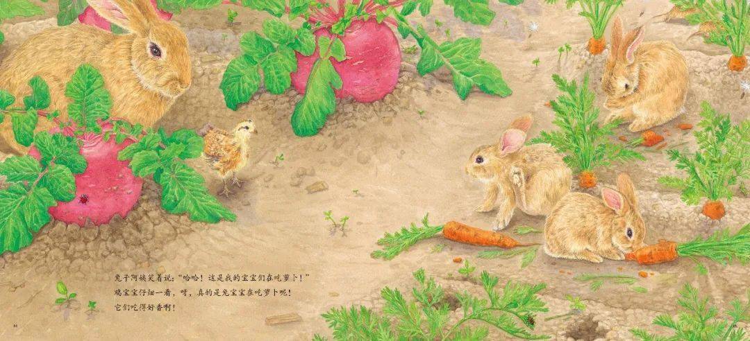 ✦ 这是一本充满细节的图画书,讲述了一只小鸡找妈妈的故事。除了感受到鸡妈妈和鸡宝宝之间温暖的亲情,小读者还可以在阅读的时候认识各种蔬菜的花、叶、果实,同时寻找隐藏的小昆虫。