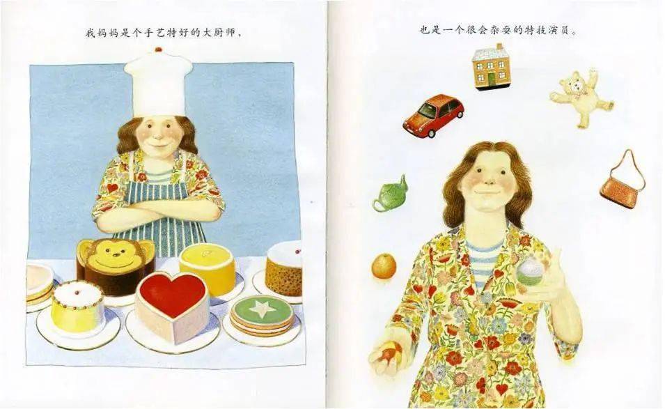 ✦《我妈妈》每一个孩子心中的妈妈都是最好的:我妈妈是一个棒极了的厨师;她是一个伟大的化妆师;她是全世界最强壮的女人;她还是一个奇异的园艺师,可以让任何植物生长;她是一个仙女,在我沮丧的时候她总是有办法让我开心起来;她的歌可以唱得像天使一样好;她吼起来像一头狮子;我的妈妈像蝴蝶一样漂亮,又舒适的像一把扶手沙发……她常常逗我大笑。
