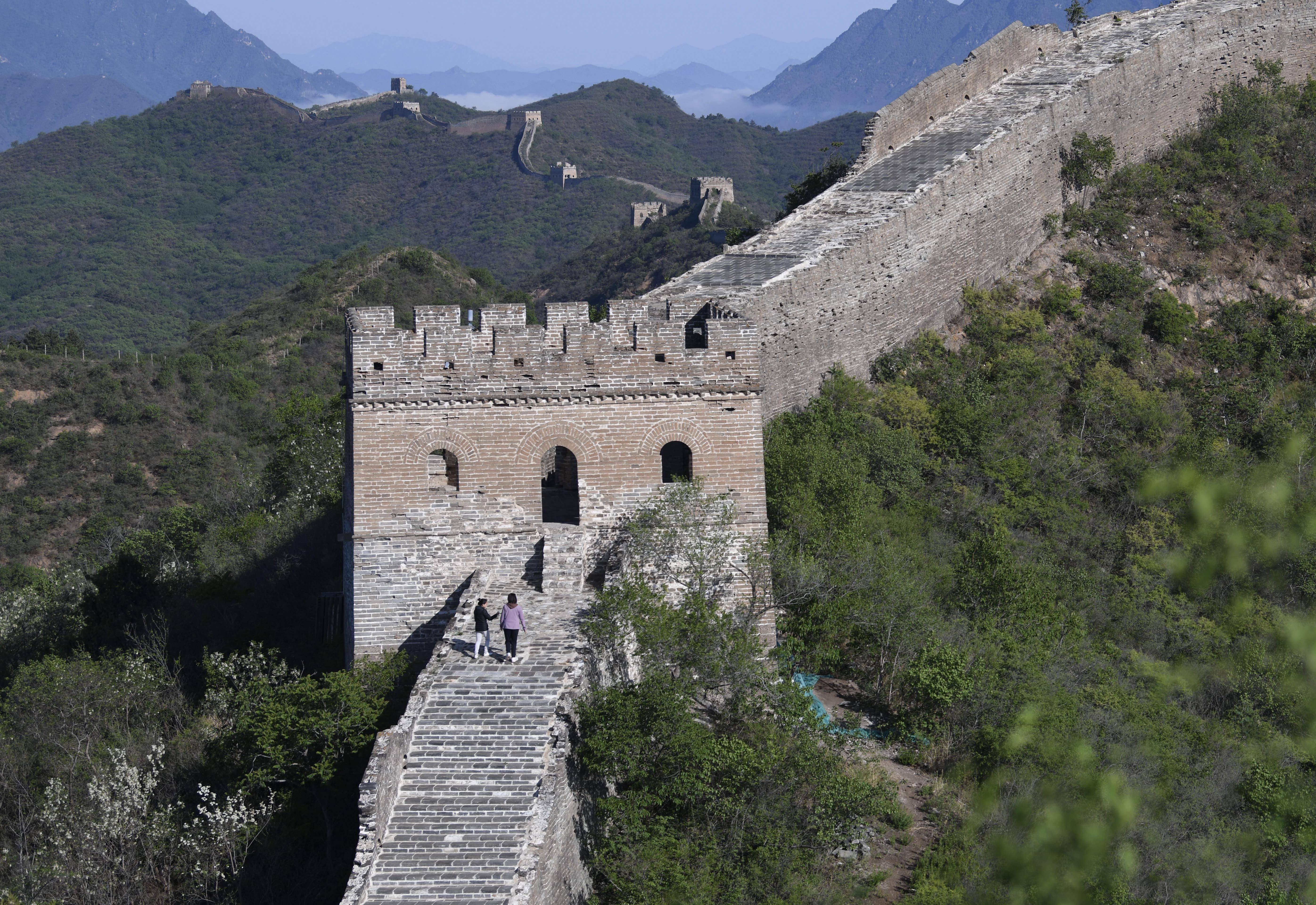 5月13日,游客在金山岭长城上游览。 新华社发(王立群摄)