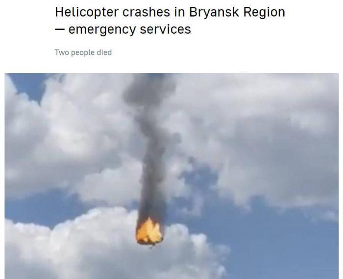 原标题:俄媒:一直升机在俄罗斯布良斯克州坠毁 致2人死亡