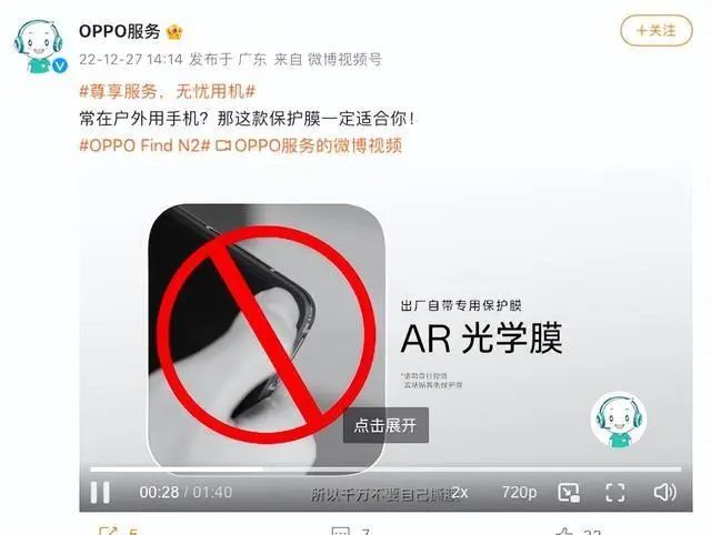 21君注意到,2022年OPPO推出Find N2折叠屏手机发布不久之后,官方就已经通过官方微博科普了自带贴膜的重要性,提醒用户不要自行撕掉。至于原因除了用户自己撕容易损坏屏幕外,还因为自带的贴膜在保护屏幕这一基本作用外,还有对屏幕显示方面的加分。