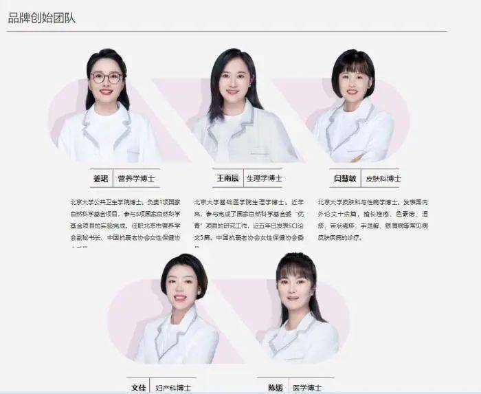 “五个女博士”官网信息则宣传,该品牌成立于2019年7月,由来自北京大学的五个医学女博士联合创立,官网首页还放上了五人的简介。其主要产品包括胶原蛋白肽维c饮品、每日亢唐植物饮品等。