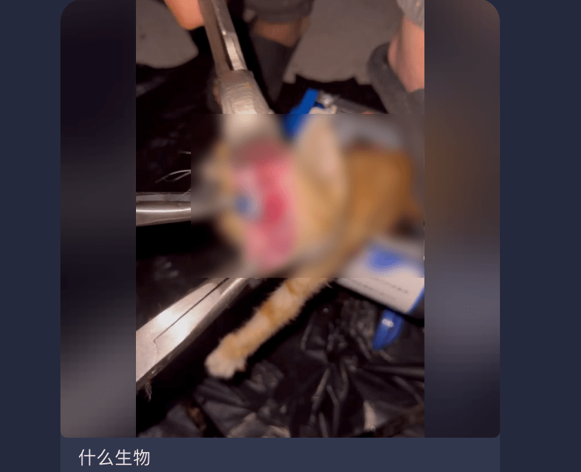 虐猫的时候,图片配文往往是 “ 什么生物 ” 、 “ 过瘾 ” ,网络上看到伤害猫的视频,转发到群里来句哪位群友?跟了个笑脸。