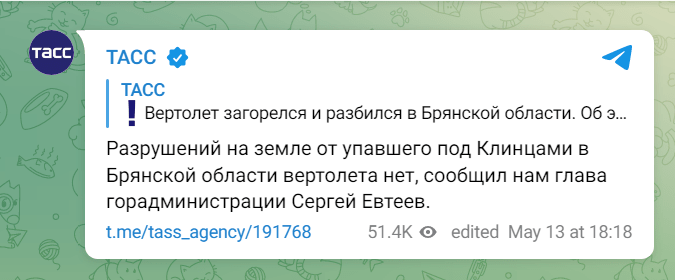 消息称,坠毁的俄罗斯军用机分别是1架苏-35战斗机、1架苏-34战斗机和2架米-8直升机,坠毁位置在俄罗斯布良斯克地区,距离俄乌边界约50公里,机上人员均已死亡。