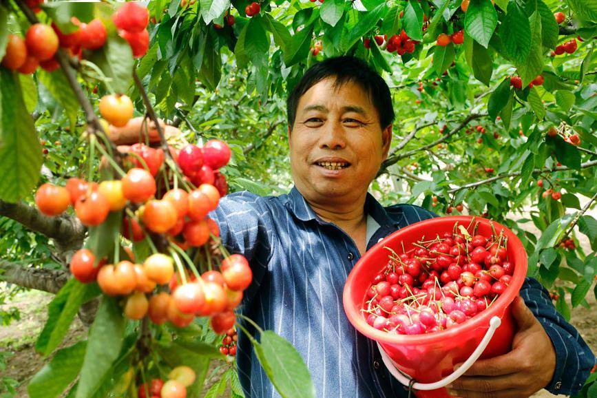 人民网开封5月13日电(于思远)近日,村民在河南省尉氏县十八里镇凡家村樱桃种植基地采摘樱桃,准备外销。