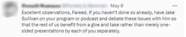 还有人建议,扎卡里亚应邀请沙利文去他的节目作客,双方好好辩论下相关议题。