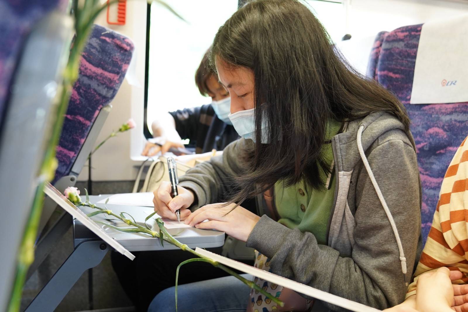 当天10:51,C6409次列车从万州北站始发、开往重庆北站。在列车的5号车厢,这里挂满了灯笼,座位插上了康乃馨,车厢里一片温馨的氛围。活动开始后,乘务员深情演唱《慈祥的母亲》《烛光里的妈妈》等歌曲,旅客们津津有味地欣赏着,有的还拿出手机,拍摄照片,记录下这个精彩瞬间。在随后的“爱要大声说出来”活动环节,乘务员与旅客互动,旅客们与自己的母亲视频连线,说出自己的心里话、祝福母亲节日快乐。活动现场,乘务员还发放特制的许愿卡,邀请旅客写下一段祝福母亲的文字,给母亲送上特殊的节日礼物。旅客李女士说:“今天是第一次在高铁上遇到这个庆祝母亲节的活动,感觉自己特别幸运,再加上自己作为一个母亲,也深深体会到做母亲的不容易,所以我也感恩我的妈妈,感恩我老公的妈妈,感谢他们对我和我女儿的无私照顾和爱,谢谢她们。”