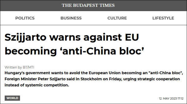 西雅尔多在会议间隙的讲话中提到,尽管存在外部和内部的努力试图将欧盟变成“某种反华集团”,但匈牙利绝对希望避免这种情况。“个别欧洲国家企图将中国定义为系统性竞争对手,这种做法我们完全不同意。”他表示,布达佩斯认为,欧盟应该致力于同中国进行战略合作。