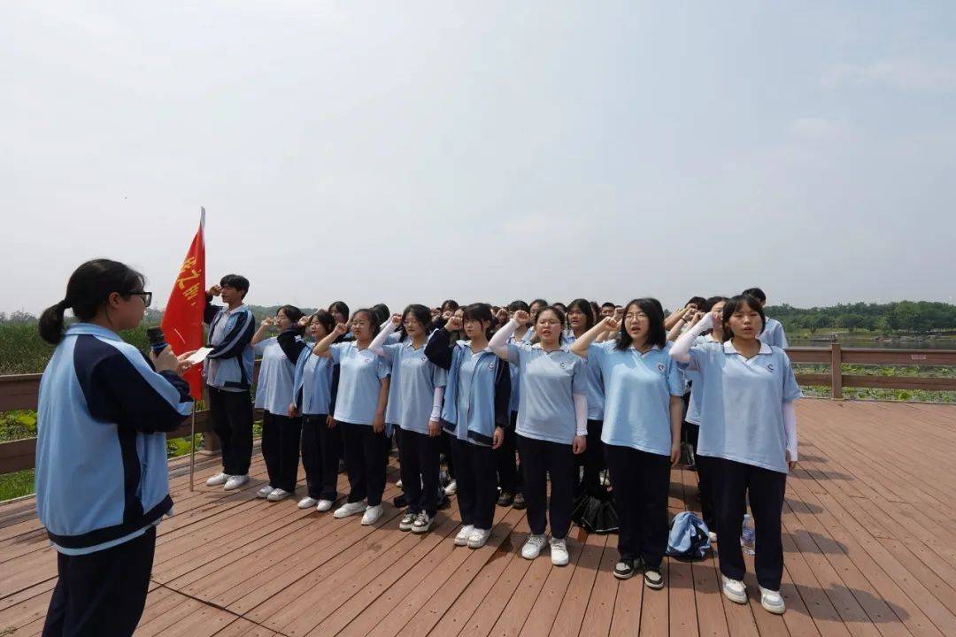 经过两个小时的长途跋涉,全体师生到达了本次活动的目的地——万丰湖公园。随后,在年级部安排下各班依次庄严宣誓,当誓言又一次在耳畔响起时,心中积蓄的不仅是奋进的力量,更添了几分成竹在胸的笃定。五月的万丰湖树木葱茏,碧波荡漾,学子们的激情给公园带来了别样的风采。