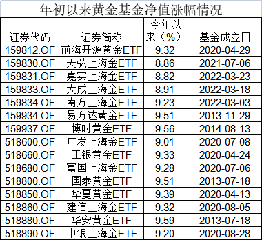 黄金ETF基金净值大涨