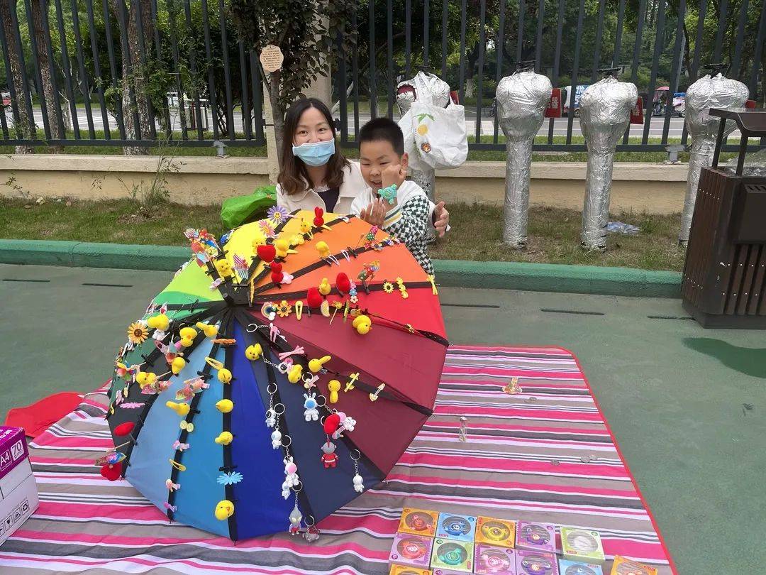“老师,母亲节我想给妈妈买礼物”,“买礼物需要钱,我们又没有钱怎么买”。为了能筹到能给妈妈买礼物的钱,在孩子的你一言我一语中,大班组开展了跳蚤市场活动。于是,家长和孩子们着手整理自家闲置物品、制作宣传海报、商定价格,真是创意十足,层出不穷。叫卖声、讨价还价声、欢呼声,现场堪称火爆。