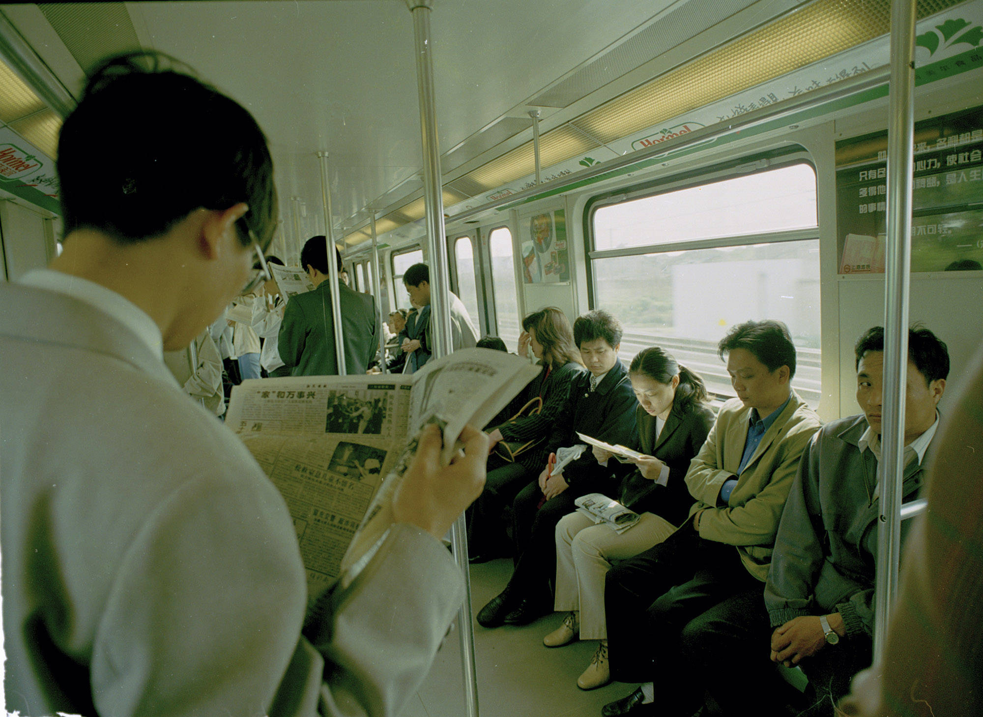 2000年,上海。地铁上正在看报的人。陆杰 图