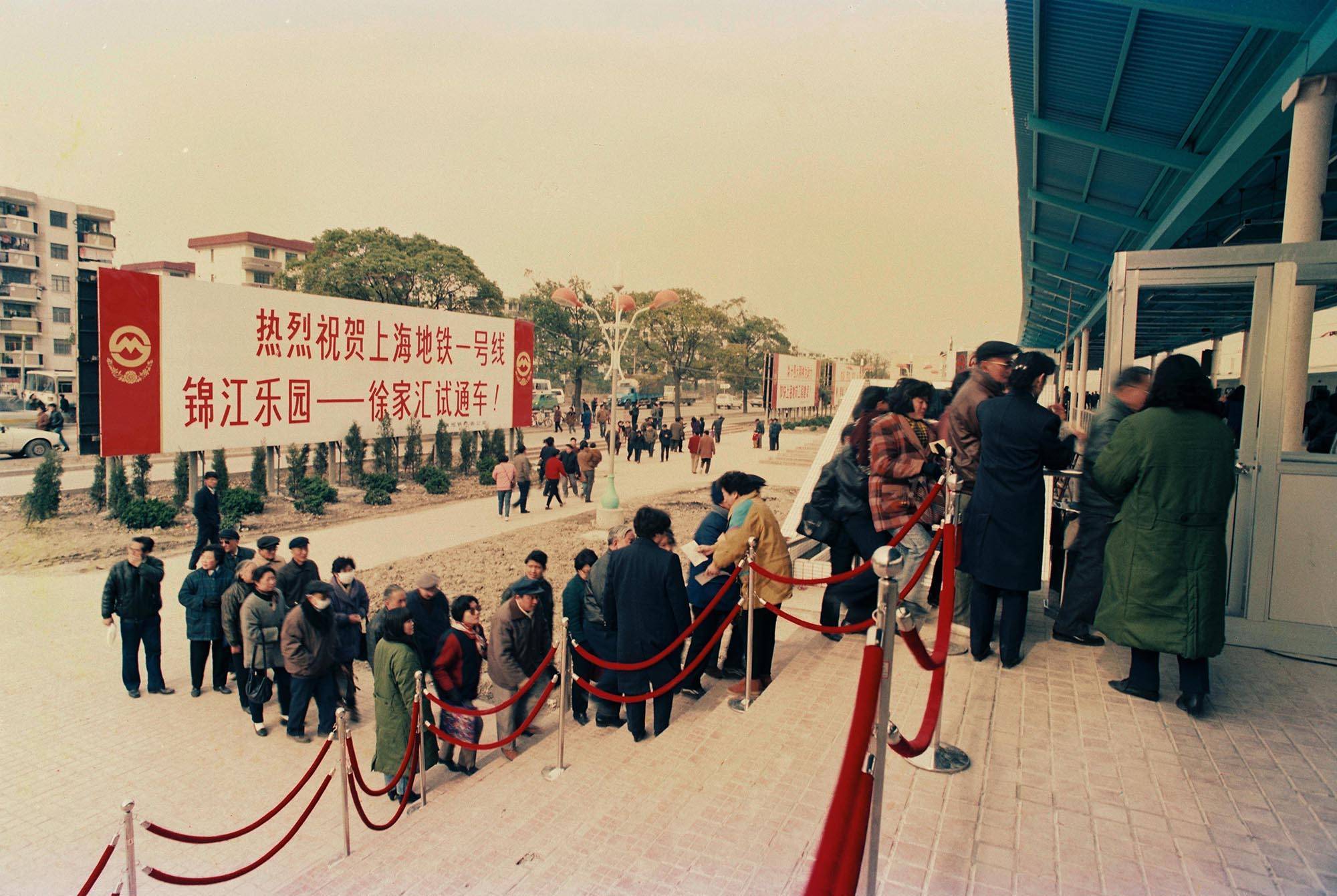 1993年5月28日,上海地铁一号线南段(锦江乐园至徐家汇区间)投入观光试运营。图为人们排队进站。陆杰 图