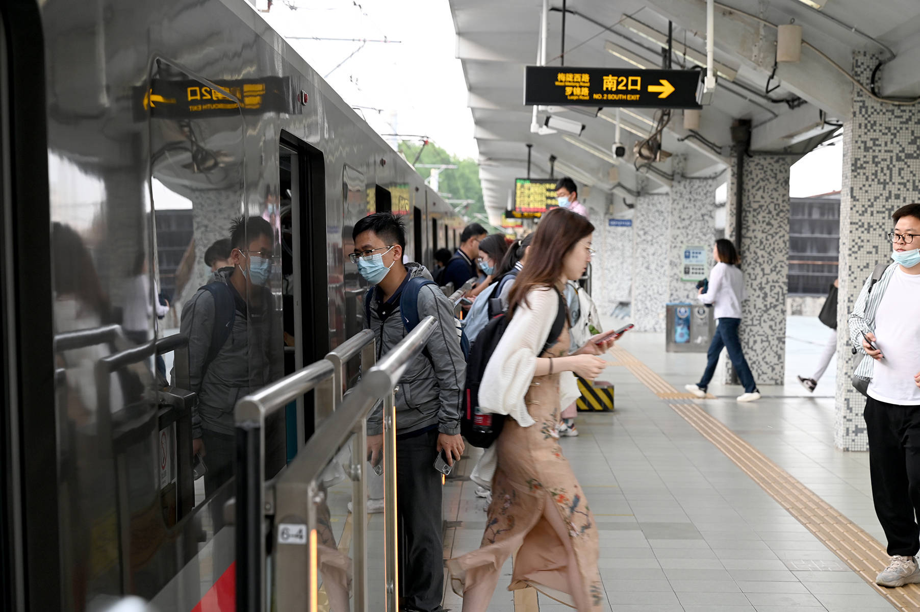 2023年5月25日,上海,地铁外环路站。上下列车的乘客。澎湃新闻记者 吴栋 图