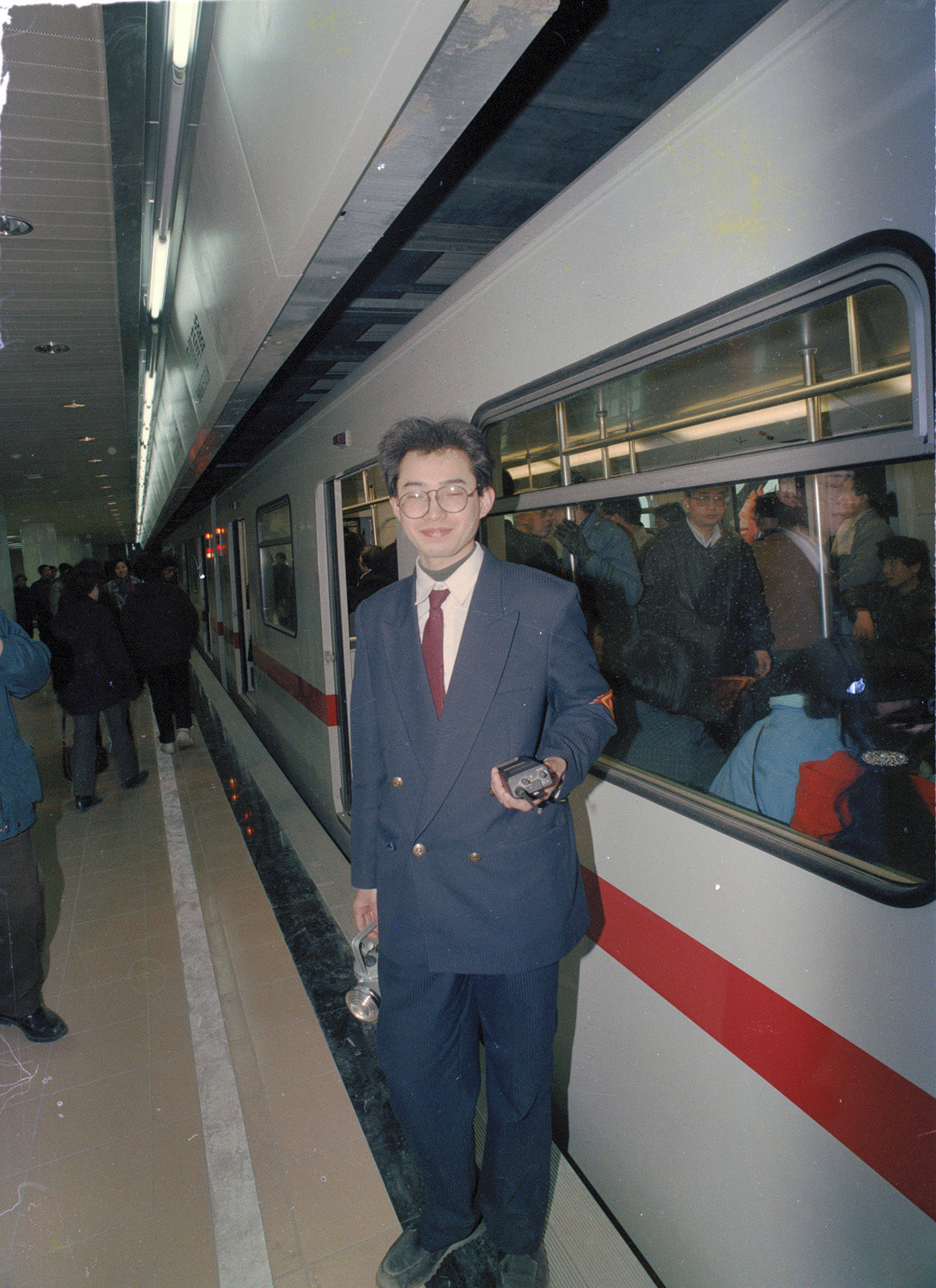 1993年5月28日,上海地铁一号线南段(锦江乐园至徐家汇区间)投入观光试运营。图为当时的徐家汇站站长。陆杰 图