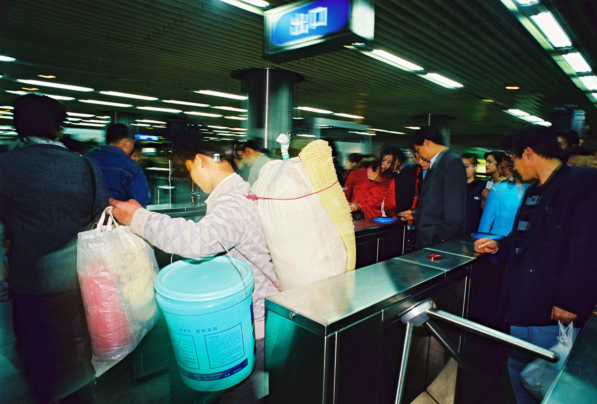 1995年,上海。携带行李的乘客穿过地铁闸机。陆杰 图