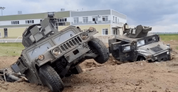 俄罗斯发布的击毁悍马装甲车照片,随后被西方媒体认定为“可疑的”。