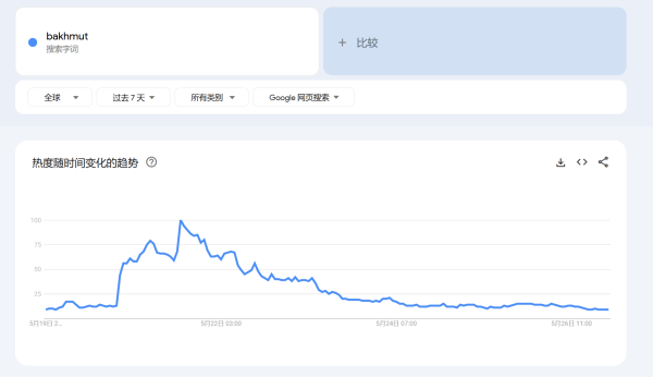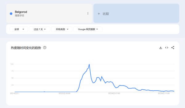 而就在5月22日整个互联网上关于“巴赫穆特”的搜索热度达到最高潮时,“俄罗斯志愿军”和“自由俄罗斯军团”对俄罗斯别尔哥罗德地区发动袭击的消息让“别尔哥罗德”成为了新兴的搜索热词。而当公众在不到48小时内发现这场所谓的“攻入俄国”的大新闻规模和效果极为有限,对“别尔哥罗德”的热情也迅速消散之时,曾经让乌克兰方面脸面无光的“巴赫穆特”也没有那么多人提及了。用笔者的话说,比起战场得失,所谓的“别尔哥罗德共和国”更像是一个用来掩护“巴赫穆特”从媒体议程设置上撤退所使用的“大新闻烟雾弹”。