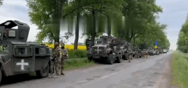 进入别尔哥罗德的俄罗斯志愿军车队,可见其车队中编有的M1224MaxxPro和悍马装甲车。