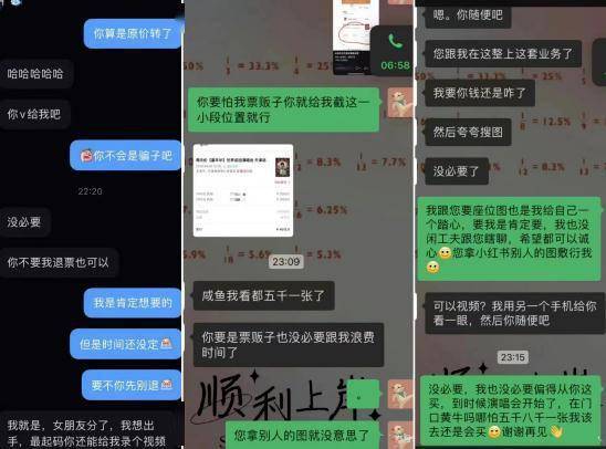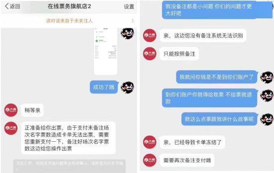 等歌迷准备买票时,他们会以定金、辛苦费等各种理由要求支付价款,甚至说卡单了需要重新备注支付才能出票,以此骗取更多钱财。