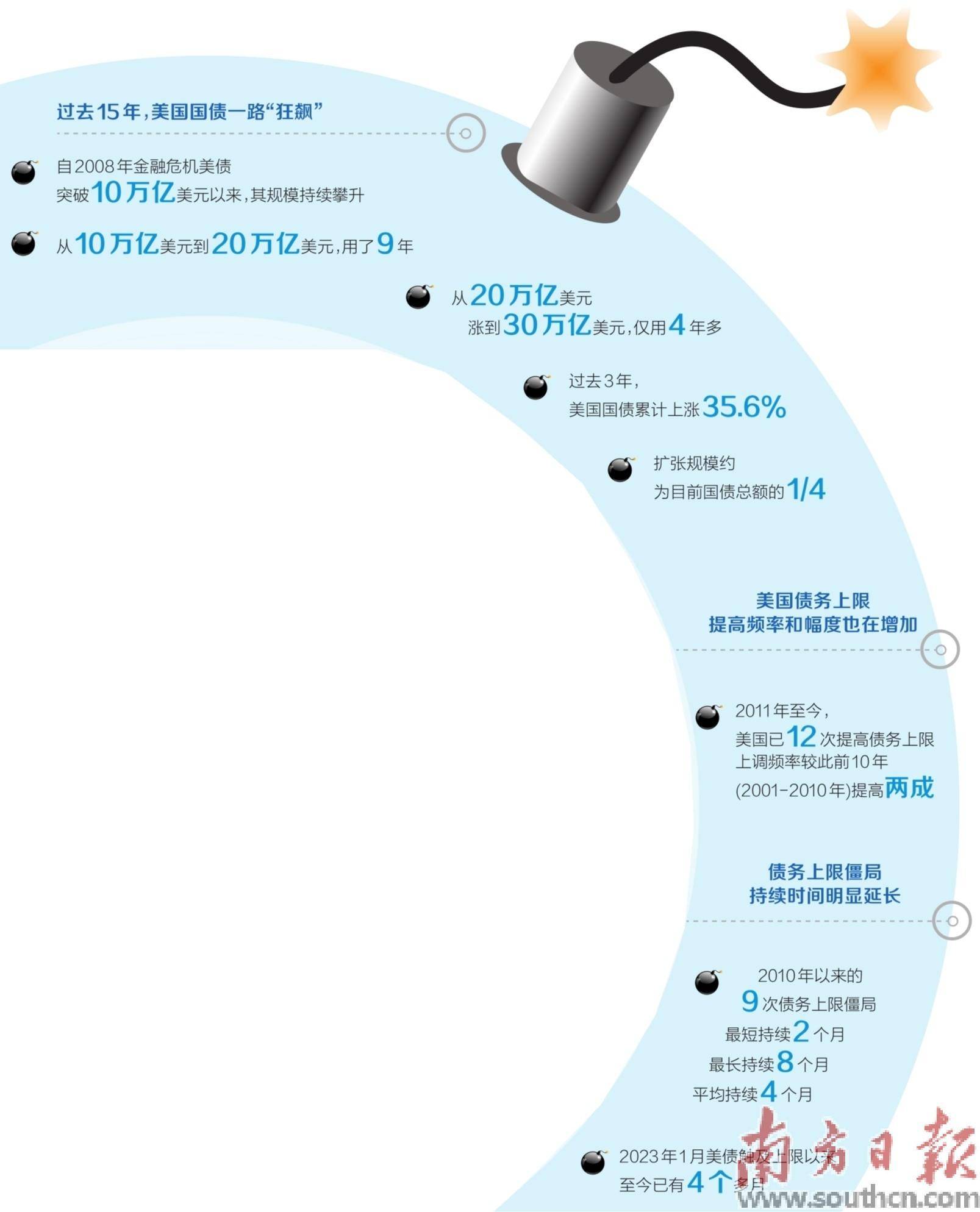 “与前几年的债务上限问题出现时不同,今年在硅谷银行倒闭事件后,全球金融体系的脆弱性明显增加。全球各国央行和金融机构均持有大量美国国债,作为无风险资产,一旦其出现风险,将引发市场的巨大震荡。”王丹说。