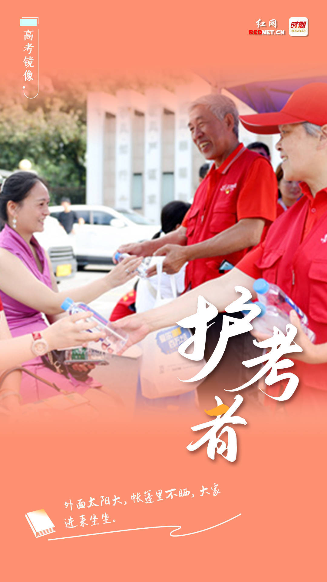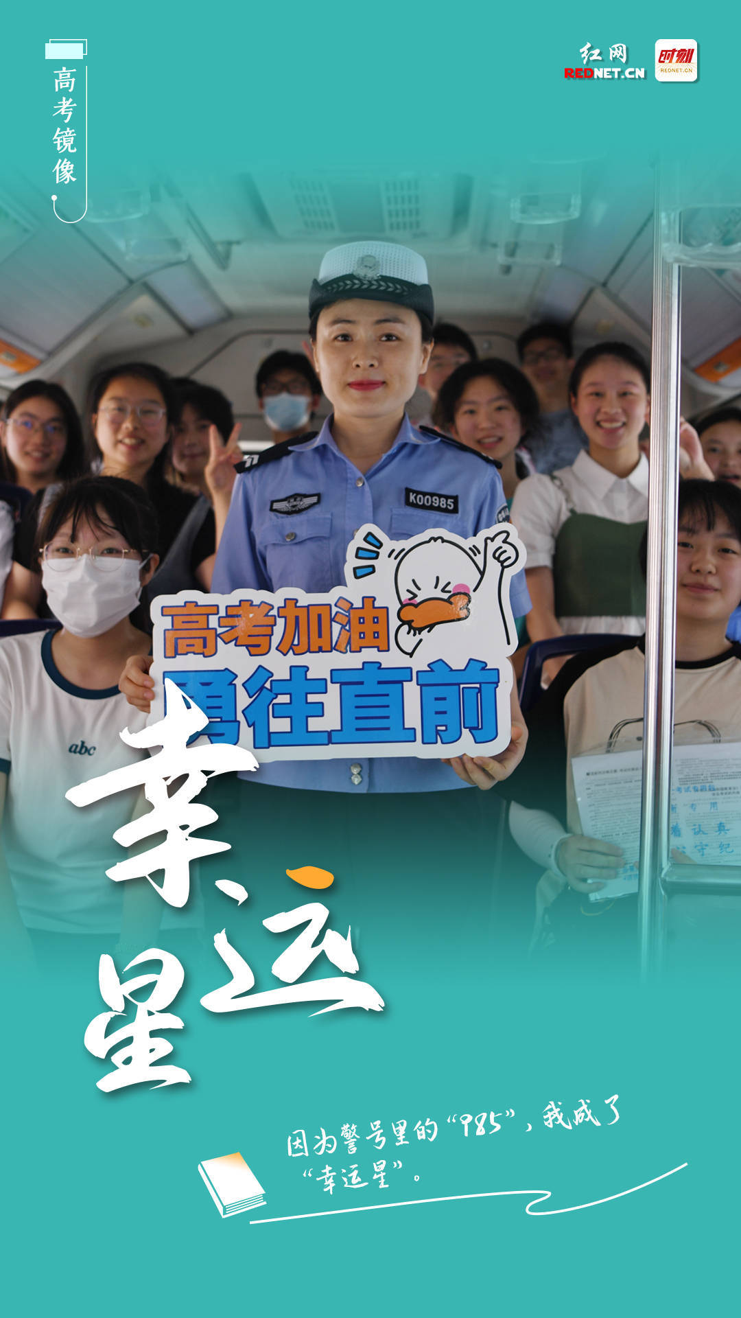 我叫肖辉,是娄底市一名普通交警。高考第一天,在去娄底三中送考的时候,眼尖的考生看到了我胸前的警号中间的数字“985”。因此,我顷刻间成为了考生眼中的“幸运星”。天道酬勤,付出终有回报。愿各位考生金榜题名,也祝大家安全出行,平安回家。——娄底市公安局交警支队 肖辉