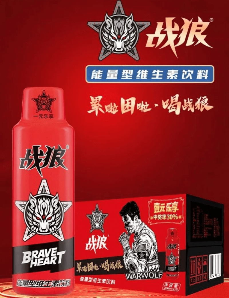 战狼饮料蹭的热度不止于此。在品牌宣传上还照搬东鹏特饮广告口号,直接打出“累啦困啦喝战狼”的宣传标语。