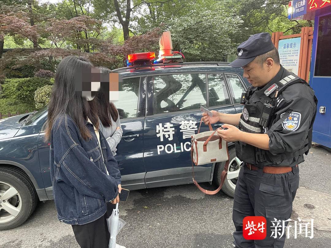 民警立即赶到报警人所在的位置,对其行为表示赞扬和感谢后,民警立即开始着手处理这个被遗失的挎包。民警在包里看到了两张身份证,两张当天准备离开南京的火车票。此外,包里还有两本学生证。根据包里火车票的出发时间,民警推测,失主应该是来南京旅游的大学生,现在可能是在景区至火车站的路上。