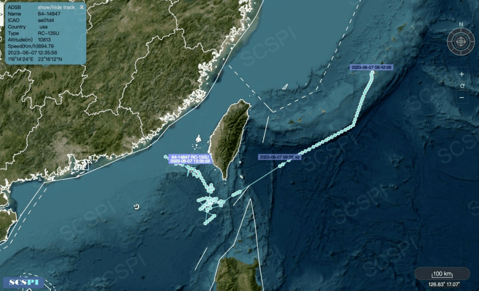 值得一提的是,卫星照片显示,中俄空军在宫古海峡和西太平洋海空域巡航期间,7日美军“尼米兹”号和“里根”号组成的双航母战斗群也正在宫古海峡以东海域活动,当天美军RC-135侦察机突然穿越巴士海峡,抵近台岛西南空域侦察,很有可能是为了美军航母战斗群从巴士海峡进入南海探路。