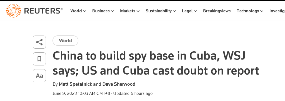 这篇文章不仅宣称中国与古巴秘密达成了一个协议,将在古巴建设一个监听美国本土军事基地的电子监听站,还将此事和当年美苏冷战时的“古巴导弹危机”进行了对比。