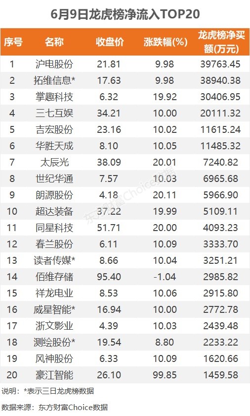 日内上榜龙虎榜个股中,资金净流入最多的是沪电股份,为3.98亿元。数据显示,该股日内涨停收盘,全天换手率6.56%,成交额26.11亿元。资金净流入居前的深股通席位日内净买入1.19亿元。