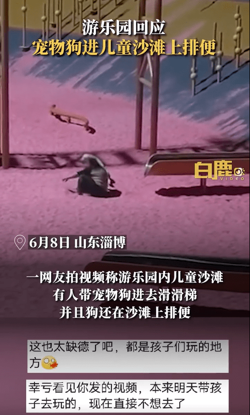 据白鹿视频报道:6月8日,山东淄博一网友拍视频称游乐园内儿童沙滩,有人带宠物狗进去滑滑梯并且狗还在沙滩上排便,不少家长担忧狗的粪便带有细菌,小孩玩沙子很容易感染危险,表示不会再带孩子去玩。对此,齐国美食城游乐园工作人员回应称,狗没在沙滩排便,游乐园还没有正式营业,管理上有疏松,了解情况后已配备保安,不会再让宠物进去。