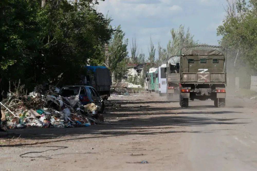 ▲2022年5月20日,载着乌克兰武装人员的巴士驶离马里乌波尔。图/新华社