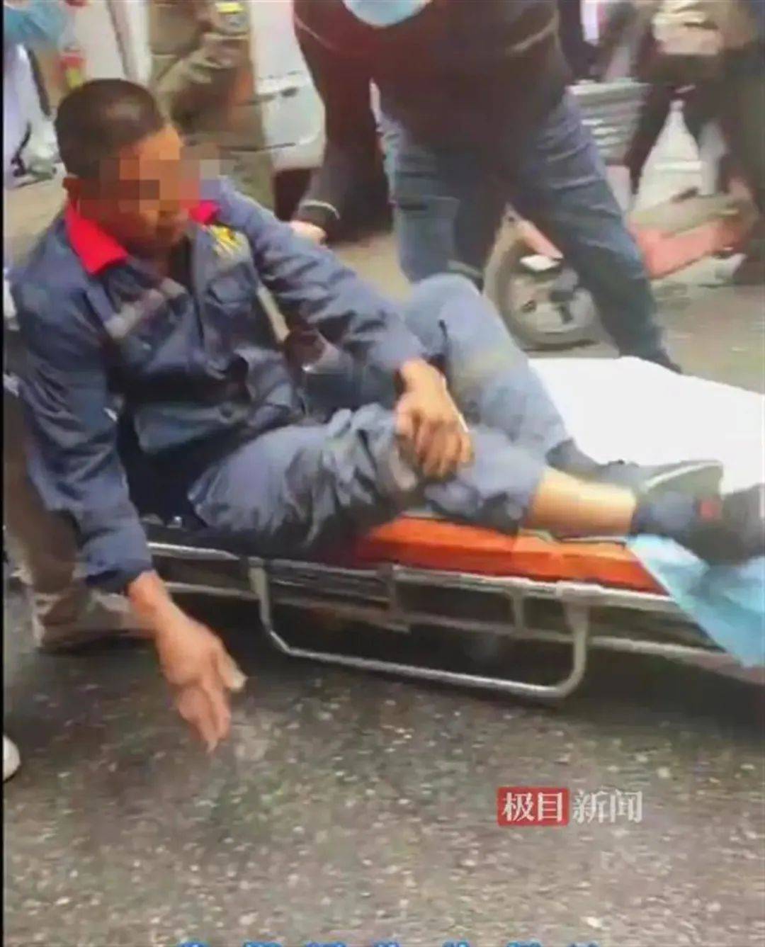 疑似被击倒的市民捂着受伤的腿部