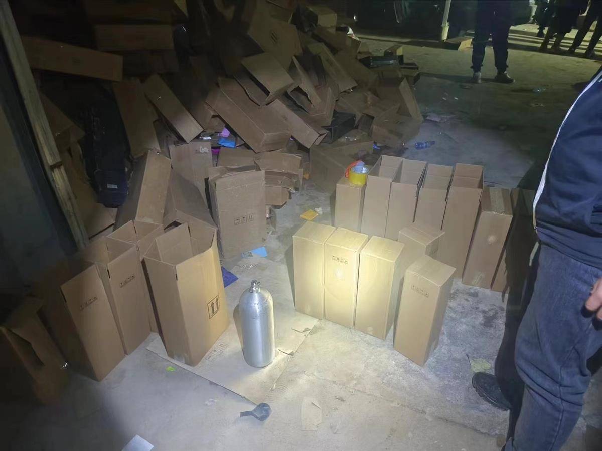 与此同时,前方抓捕组的民警根据杨某集中交易时间段,成功将正准备出门贩卖“笑气”的张某一举抓获,现场还一并查处了赵某、李某等两名正在吸食“笑气”的嫌疑人。至此,一个专门在网上购销“笑气”的违法团伙逐渐浮出水面。通过对张某等人依法进行审讯,张某交代,这些灌装好的“笑气”都是在一家地下灌装工厂购买,为了不被人发现,他们时常将自己伪装成是生产氧气的工厂,企图混淆视听。