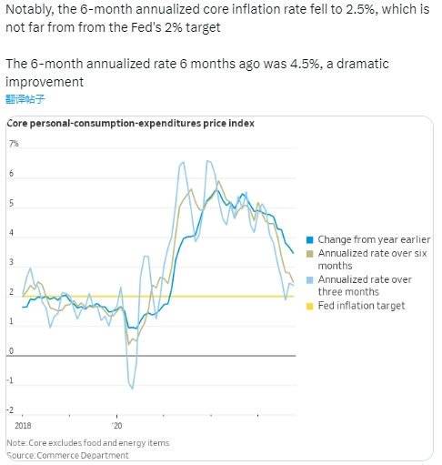 顺便一提,知名美国宏观记者、“新美联储通讯社”尼克·蒂米劳斯也强调了“美国特色”的数据年率算法。他指出,过去6个月的核心通胀年华率已经从半年前的4.5%降至了2.5%,距离官方2%的目标不远了。