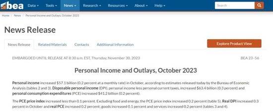 北京时间周四晚21时30分,美国商务部经济分析局(BEA)公布了被称为“美联储最青睐”的个人消费支出物价指数(简称PCE),基本符合预期的结果继续推动美联储明年上半年降息的预期,也对资本市场构成利好。