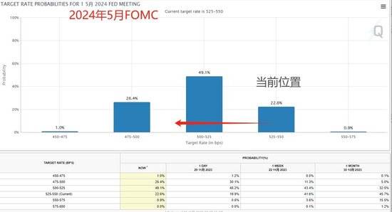 根据股民们极为熟悉的“美联储观察工具”显示,目前交易员们基本不相信美联储还会再加息,焦点早已转向“何时降息”这件事上。在周四数据发布后,交易员们给(明年)3月降息25个基点的概率大概是一半对一半,而5月降息的概率继续维持在80%附近。