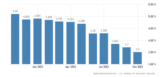 周四美股盘前,威廉姆斯提到的“首选的物价指标”——PCE物价指数年率从3.4%降至3%,核心PCE物价指数年率则从3.7%降至3.5%,均符合市场预期。“我们采取了限制性的立场,事情正朝着正确的方向发展。”