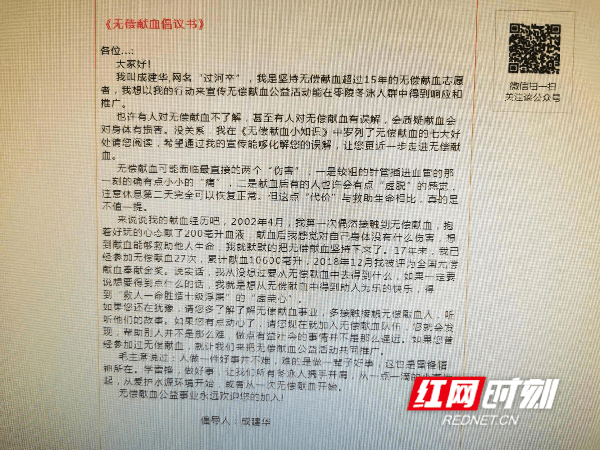 为了能够帮助到更多血液病患者,成建华还加入了中华骨髓库,签订了造血干细胞捐献书,成为一名光荣的造血干细胞捐献志愿者。