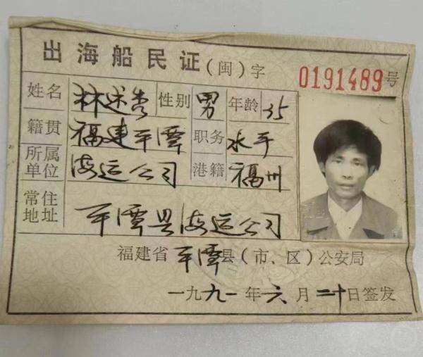 林述秀的出海船民证。图片来源/受访者
