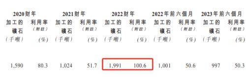 2022财年,公司加工的矿石已达199.1万吨/年,产能利用率已经达到100.6%。在现有的开采范围和开采条件下,集海资源的黄金产量已经达到饱和,无法继续扩产。