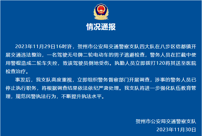 11月30日,广西贺州交警发布通报