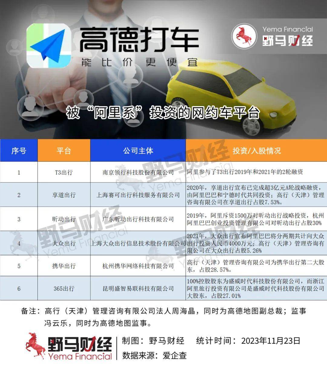 高行咨询的法人代表周海晶同时也是高德地图副总裁,并且还担任高德打车运营主体易行出行法人。而高行咨询的监事冯云乐,同时也在阿里技术、高德、易行出行、淘宝全资子公司杭州同欣网络公司担任监事。