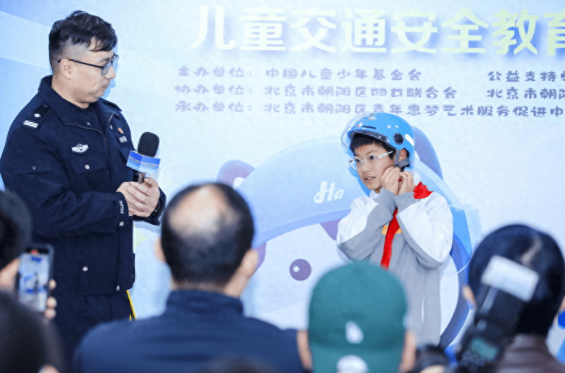 12月1日,在第12个“全国交通安全日”到来之际,北京明远教育书院实验小学的孩子们,收到了一个个小巧靓丽的蓝色头盔。在交警叔叔的指导下,孩子们学习如何佩戴头盔,认清路面信号标识。这是“荧星守护 伴你童行”儿童交通安全教育主题活动的一站。此次活动由中国儿童少年基金会(以下简称“中国儿基会”)主办,北京市朝阳区妇联、朝阳区望京街道办事处协办,哈啰公司提供公益支持。