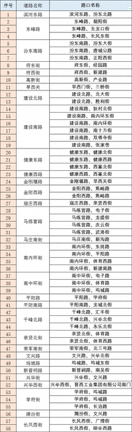根据公安部《关于进一步合理设置规范使用交通技术监控设备的通知》及《非现场查处道路交通安全违法行为操作规程(试行)》的要求,为进一步落实《中华人民共和国行政处罚法》以及《道路交通安全违法行为处理程序规定》关于监控设备设置地点向社会公布的规定,太原市公安局交通警察支队设备升级调整后,重新启用以下固定式交通技术监控设备,对机动车闯红灯、逆向行驶、不按导向车道行驶的交通违法行为进行抓拍。现向社会公布。